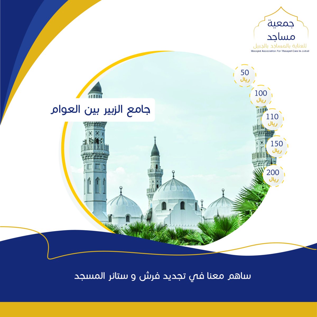 تبادر جمعية مساجد بتهيئة جامع الزبير بن العوام بتجديد الفرش والستائر وفق معايير عالية تعين المصلين على أداء العبادات بكل خشوع وطمأنينة.